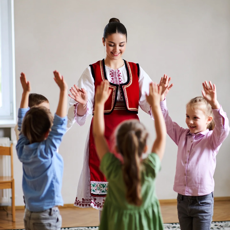 Folklor decu uči i lepoti tradicije i zajedništva. Dok pevaju i igraju u krugu, ona doživljavaju muziku srcem, otkrivaju kako se emocije izražavaju pokretom i grade osećaj pripadnosti.